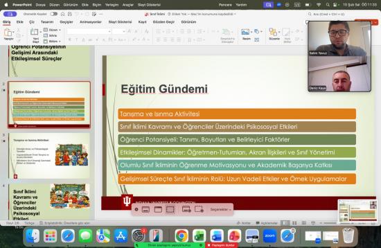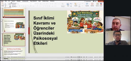 Nevşehir Hacı Bektaş Veli Üniversitesi Eğitimde Mükemmeliyet Uygulama ve Araştırma Merkezi (NEVEMM) tarafından düzenlenen “Sınıf İkliminin Niteliği ve Öğrenci Potansiyelinin Gelişimi Arasındaki Etkileşimsel Süreçler” başlıklı eğitim programı, 6 Şubat 2026 Cuma günü saat 15:00’te çevrim içi olarak gerçekleştirilmiştir. Eğitim, sınıf ortamında öğrenme süreçlerini etkileyen temel dinamikleri ele alarak, olumlu sınıf ikliminin öğrenci motivasyonu, katılımı ve akademik başarısı üzerindeki etkilerini çok boyutlu bir yaklaşımla incelemeyi amaçlamıştır. Etkinlik kapsamında; sınıf yönetimi, öğretmen-tutumları, öğrenci algısı, psikososyal etmenler, iletişim biçimleri ve öğrenme ortamının yapısal özellikleri gibi başlıklar ayrıntılı şekilde ele alınmış; öğrenci potansiyelinin açığa çıkarılması ve desteklenmesinde öğretim elemanlarının üstlendiği kritik rol vurgulanmıştır.